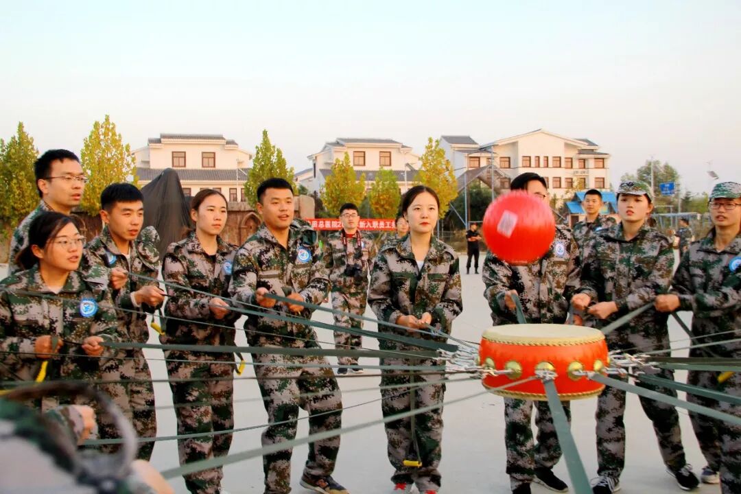 培训公司结合行业特点和医院实际,设计了“破冰、团建、极速60秒、鼓动人心、团队动力圈、盲人方阵、极限99、爱的传递、真人CS”等十余个挑战项目,并安排了晨跑及小组自创表演,每一个项目都是一次角色转变,从一个人转变为一个团队。全体新入职员工在体验式培训中,开拓了视野和格局,培养了责任思维,用空杯心态进行了一次良好的学习提升。特别是在“鼓动人生”项目中,每个队友都牵拉着其中一条绳子,通过绳子控制鼓面来颠球,所有队员用双手抓起绳子,在教练的指导下一起发力发声,在规定的时间内完成了近700个,其气势之强大令人震撼,更令人感动,优异的的成绩不仅仅是挑战自我带来的团队胜利,更重要的是每一个人都充分感受到团队统一指挥,步调一致,执行力的重要性,深刻意识到了相互信任和团队协作才能高效、才能成功。
